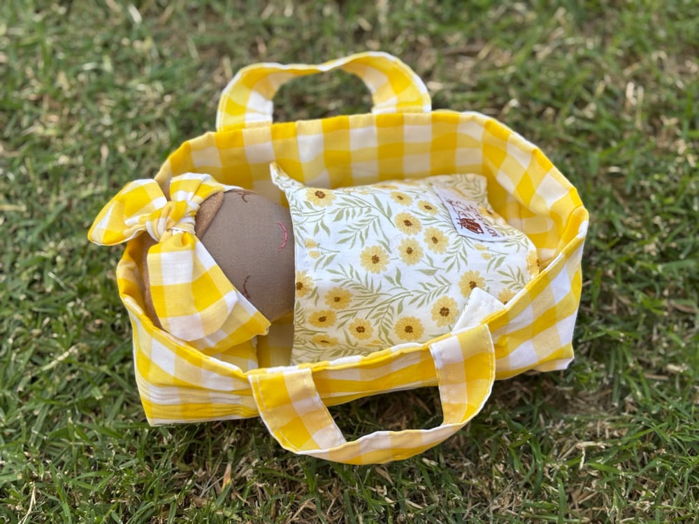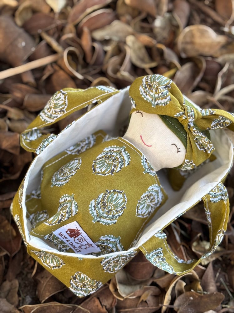 A soft cotton doll just perfect for little arms to cuddle….featuring felt hair & hand stitched face, each one unique & one of a kind….comes complete with their very own matching Basket with pillow & blanket…